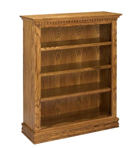 Bookcases A & E Wood Designs Britania Bookcase features Oak solids and plywood construction. Features include: *Solid Oak extra wide face frame with concealed screw assembly *3/4" Oak plywood materials *Heavy base and top crown molding casings *Fluted columns and dentil molding accents *1/4" premium oak plywood backing recessed inside cas